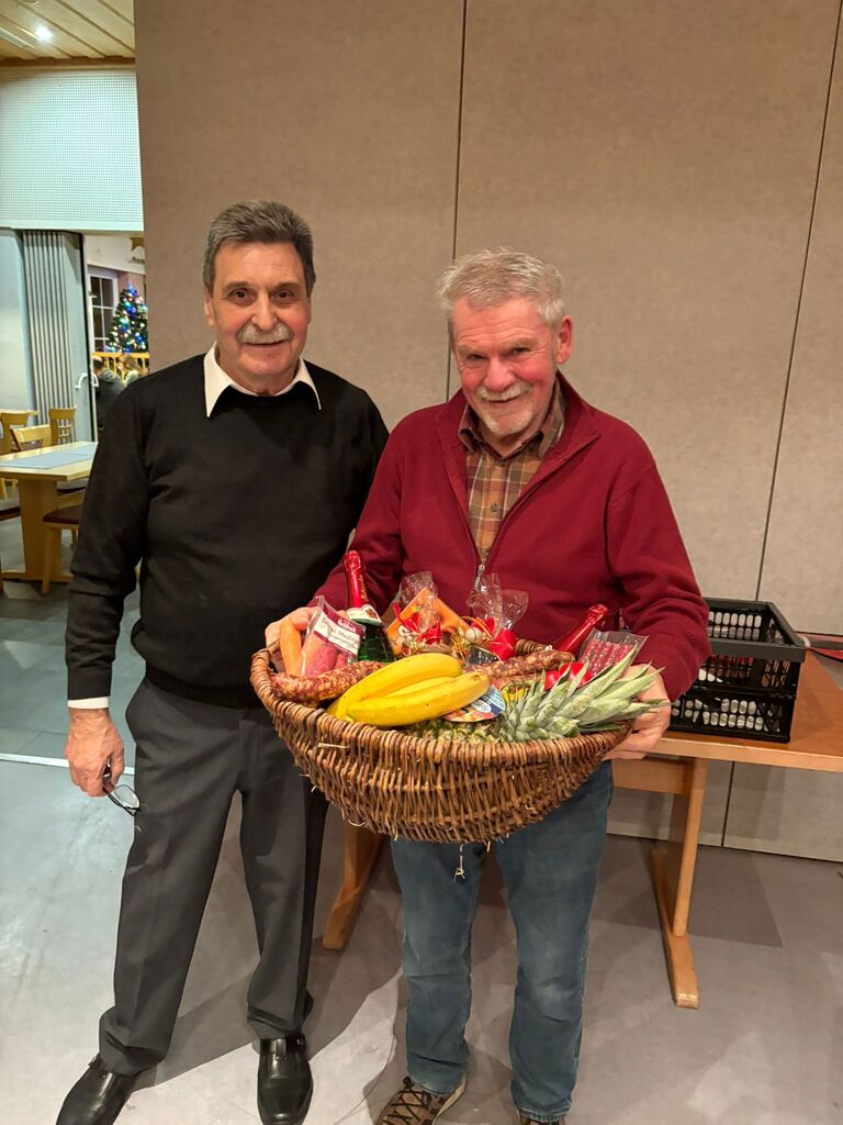 Nach dem Rückblick auf das Schachjahr 2025 gab es selbstgebackene Plätzchen und Glühwein bzw. Kinderpunsch für alle, sodass man sich in gemütlichen Runde weiter nicht nur über Schach austauschen konnte. Denn es gab ja auch noch eine Tombola, wozu jede Familie 3 Fragen beantworten musste. Glücklicher Gewinner eines Präsentkorbes mit allerlei Leckereien wurde Herbert Stenger.